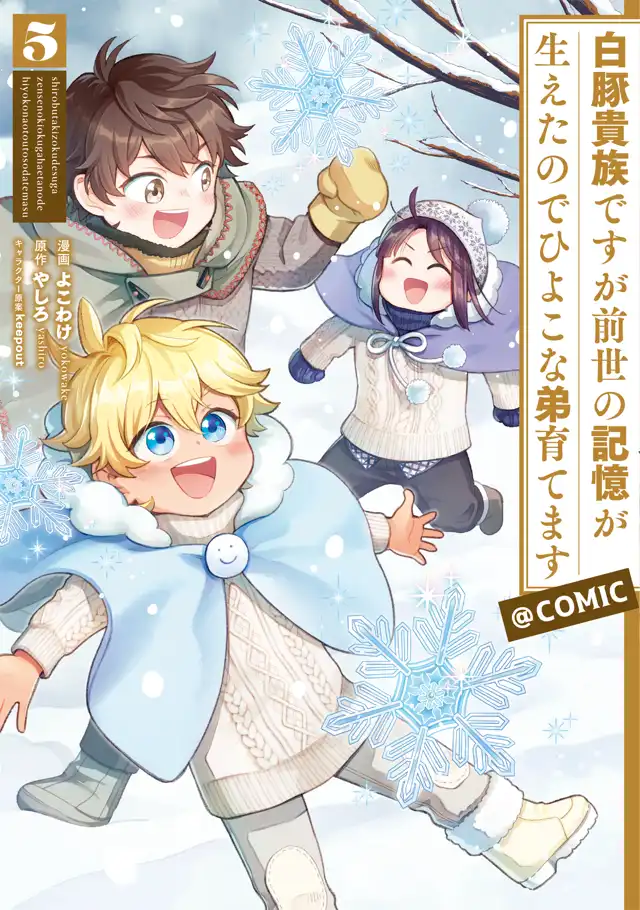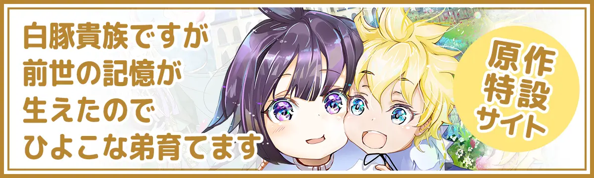BOOKS NOVELS 「⽩豚貴族ですが前世の記憶が⽣えたのでひよこな弟育てます」 (TOブックス刊) 著者:やしろ イラスト:keepout 1〜14巻 好評発売中! COMICS 「⽩豚貴族ですが前世の記憶が⽣えたのでひよこな弟育てます@COMIC」 (コロナ・コミックス刊) 原作:やしろ 漫画:よこわけ キャラクター原案:keepout 1〜6巻 好評発売中! JUNIOR NOVELS 「⽩豚貴族ですが前世の記憶が⽣えたのでひよこな弟育てます」 (TOジュニア文庫刊) 著者:やしろ イラスト:玖珂つかさ キャラクター原案:keepout 1〜6巻 好評発売中!