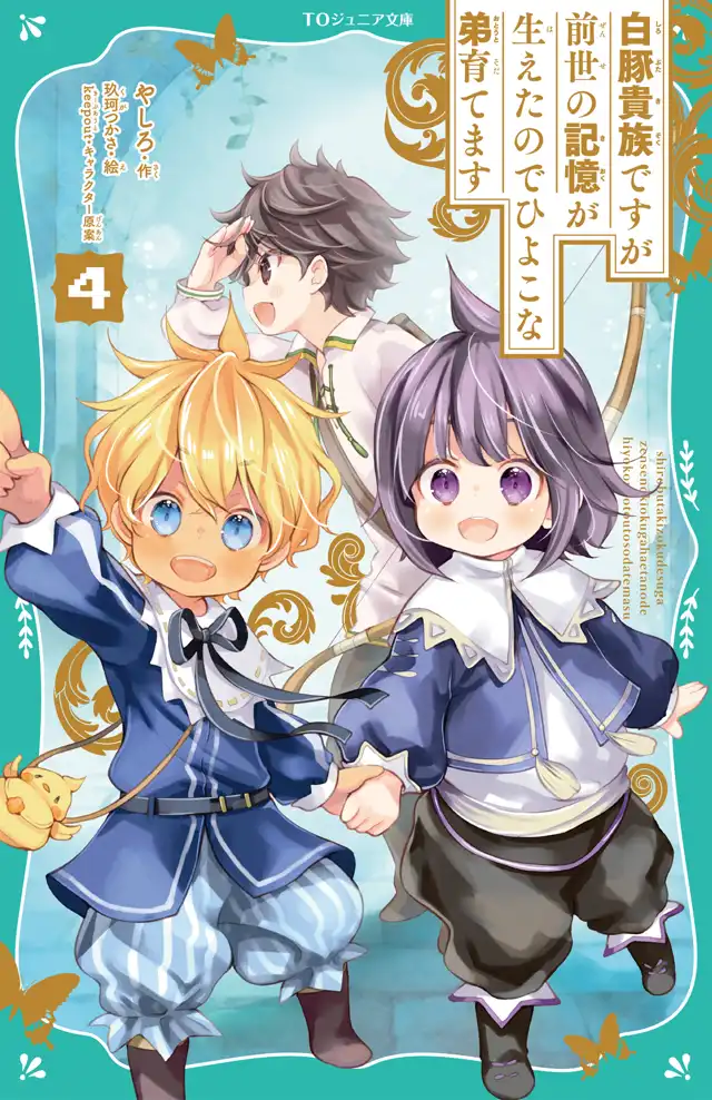 JUNIOR NOVELS 「⽩豚貴族ですが前世の記憶が⽣えたのでひよこな弟育てます」 (TOジュニア文庫刊) 著者:やしろ イラスト:玖珂つかさ キャラクター原案:keepout 1〜6巻 好評発売中!